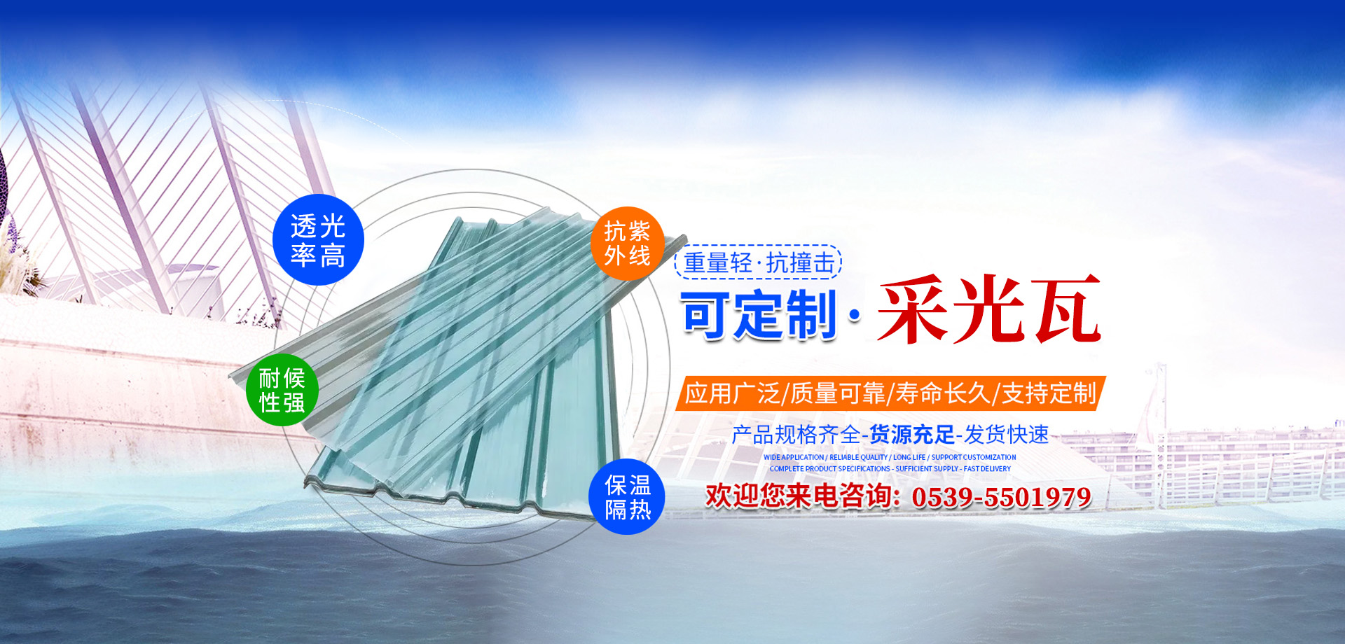 我廠常年生產采光瓦、覆膜隔熱瓦、阻燃隔熱瓦等產品。產品廣泛適應于大型建筑,現代輕鋼結構彩色壓型板,溫室大棚,體育場館,水產養殖等場所。